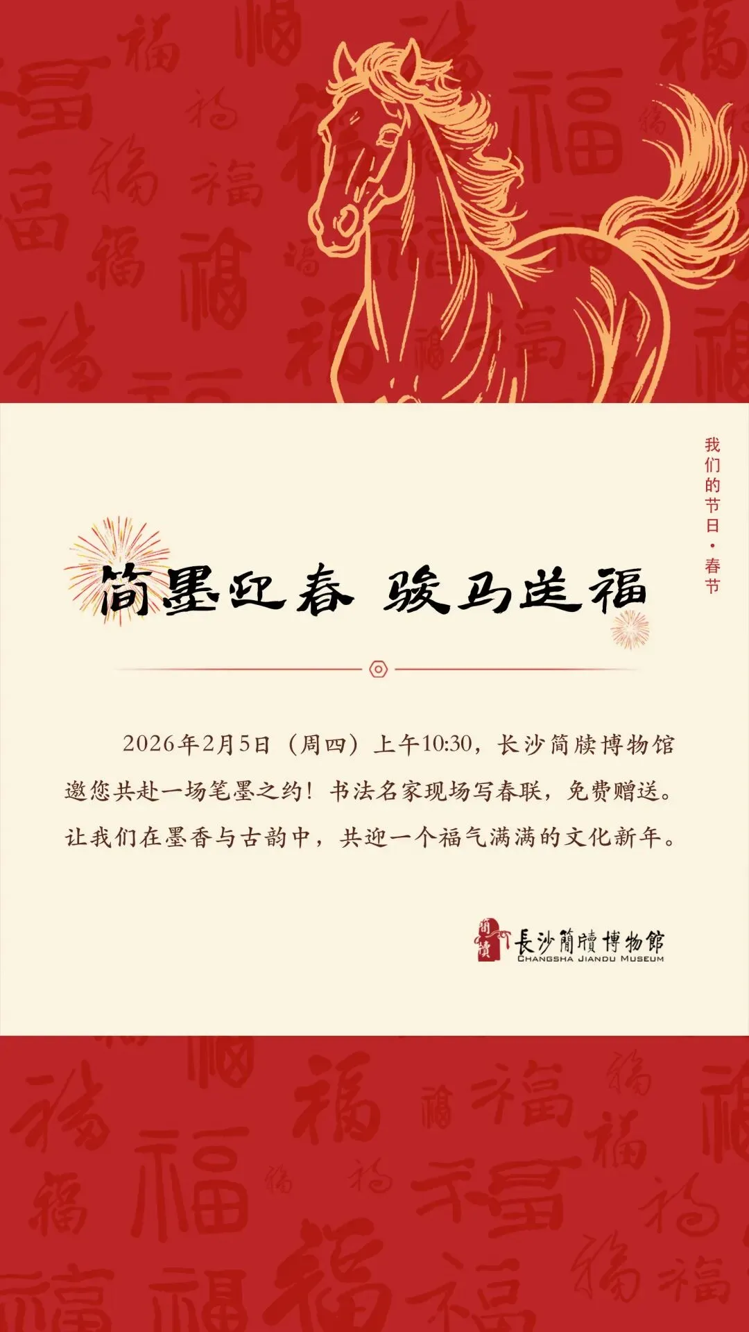 长沙简牍博物馆“简墨迎春,骏马送福”送春联惠民活动预告