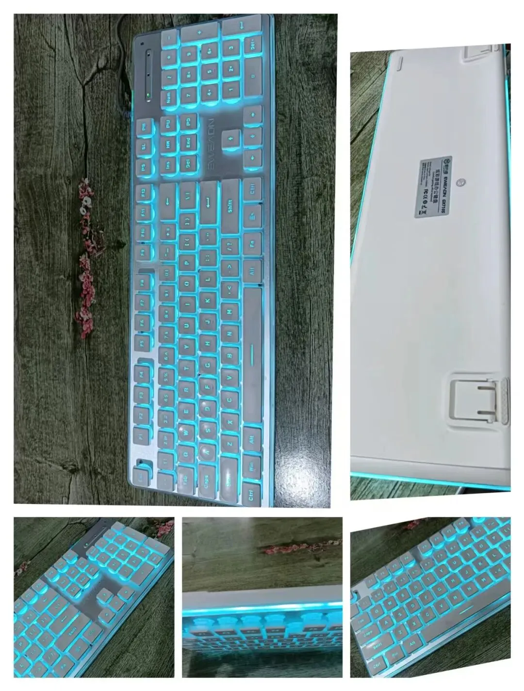 有线键盘,白色蓝光背光,金属面板,白色键帽,即插即用,手感舒适。灯光氛围感十足,喜欢带走
