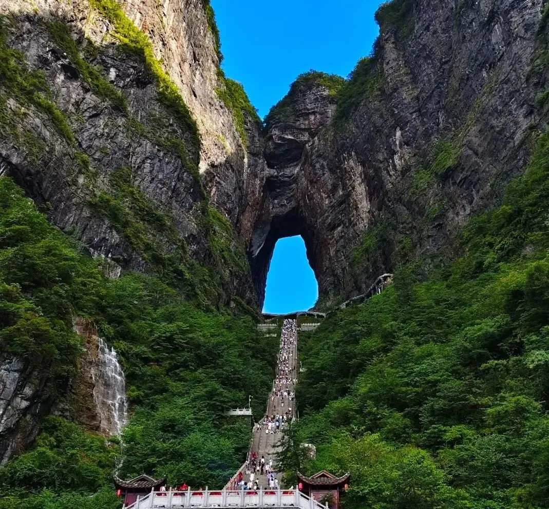 天门洞:999级天梯直通天门洞底,震撼感拉满!建议穿汉服/长裙,仰拍阶梯或俯拍云海,仙气溢出屏幕!