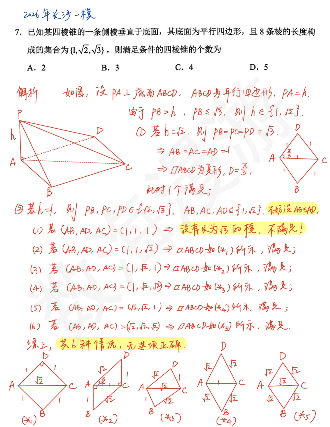 上面这道题目源自刚刚结束的长沙市一模(2026年高三年级模拟考试),因其极高的逻辑密度和对空间想象力的极致要求,在考后引发了数学圈的广泛讨论。