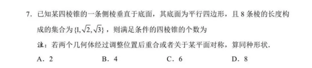 第二境界:略有所成——画出了7(或9)种四棱锥的情况,发现这题是道错题;