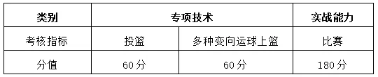 考试方法:按照篮球比赛规则,视考生人数分队进行比赛。