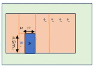 如图9所示,在侧边线与中线和三米线形成一个4.5×3米的长方形区域,在距离三米线1米处,画一条平行于4.5米线的直线,将长方形区域分成A、B两部分。靠球网部分为A区(2×4.5米),靠三米线部分为B区(1×4.5米)。