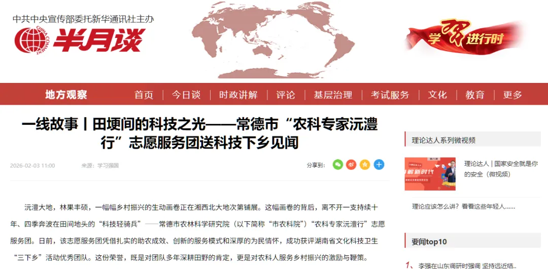 沅澧大地,林果丰硕,一幅幅乡村振兴的生动画卷正在湘西北大地次第铺展。这幅画卷的背后,离不开一支持续十年、四季奔波在田间地头的“科技轻骑兵”——常德市农林科学研究院(以下简称“市农科院”)“农科专家沅澧行”志愿服务团。日前,该志愿服务团凭借扎实的助农成效、创新的服务模式和深厚的为民情怀,成功获评湖南省文化科技卫生“三下乡”活动优秀团队。这份荣誉,既是对团队多年深耕田野的肯定,更是对农科人服务乡村振兴的激励与鞭策。