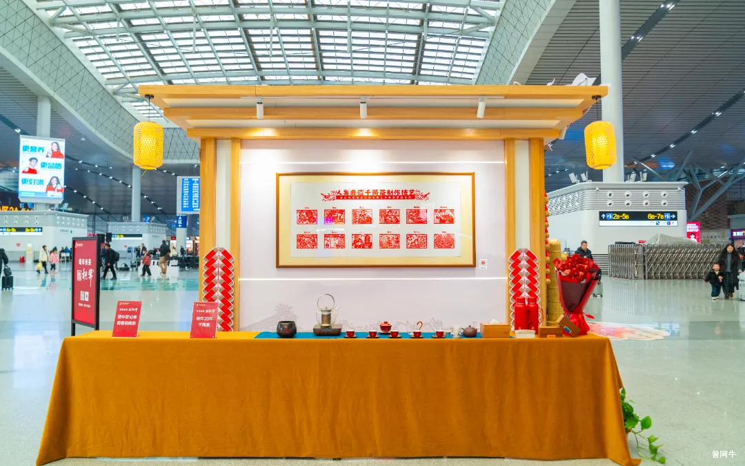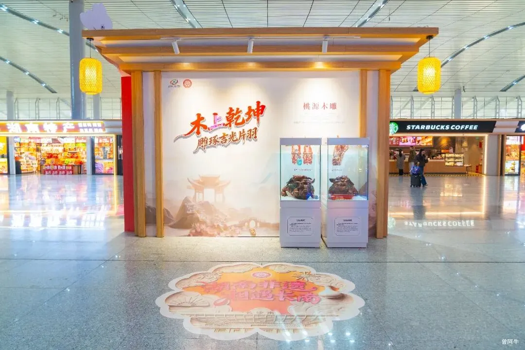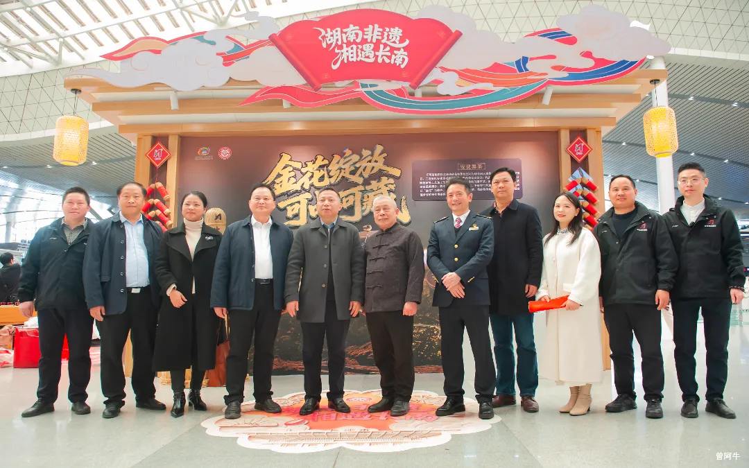 邻县安化的展位,茶香是最好的导览员。他们特意增设了一条10多米长的实木长桌,几位年轻貌美的茶艺师身着素雅的茶服,端坐桌前,动作娴熟流畅,温杯、置茶、注水、出汤,一举一动都尽显优雅,茶香袅袅升起,弥漫在整个候车大厅,让人闻之倾心。