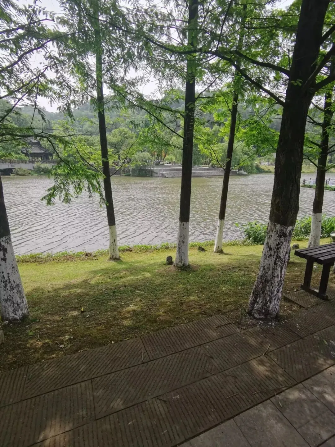 河水在身侧低吟,清澈的水面映出云影与枝桠的缠绵。河风携着草木的清香与湿润的土腥味拂面而来,像一双温柔的手抚平眉间的褶皱。浓密的树荫织成一片流动的清凉,阳光透过叶隙洒下碎金,随着车轮的行进在衣衫与肩头跳跃。
