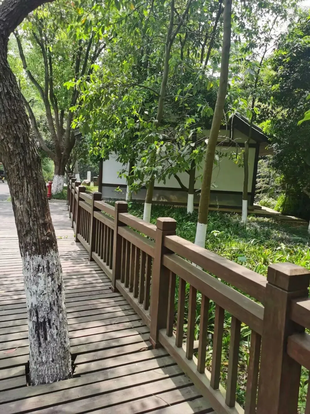 不远处的致佳亭默然伫立,飞檐翘角勾勒出岁月的轮廓,亭柱间的漆色虽已暗哑,却依旧透出匠心的端雅。它像一位守秘的老人,将这一方天地的故事藏于风里、影里、石阶的纹路里。亭畔还车,再沿宽厚的石板路步行出园,步履虽轻,却裹着一份不愿醒来的眷恋。