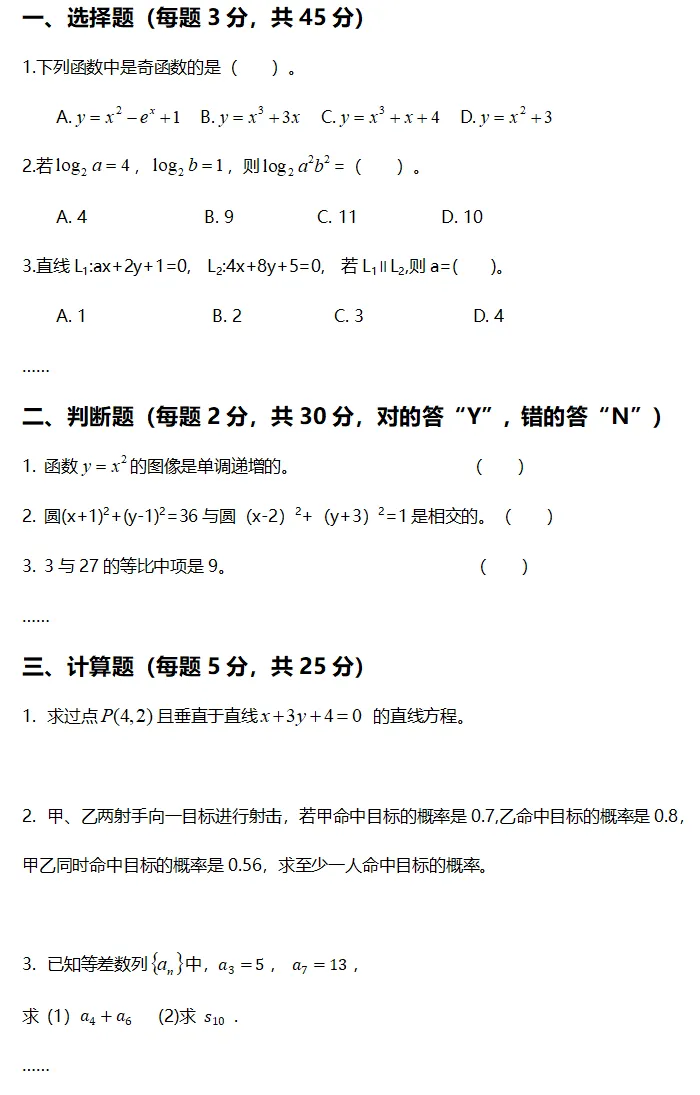 根据教育部《普通高中数学课程标准》和《中等职业学校数学课程标准》的要求,系统检测学生学习数学课程的情况,突出考查学生数学基础知识、基本技能、基本思想和基本活动经验,以及应用相关知识分析和解决问题的能力。