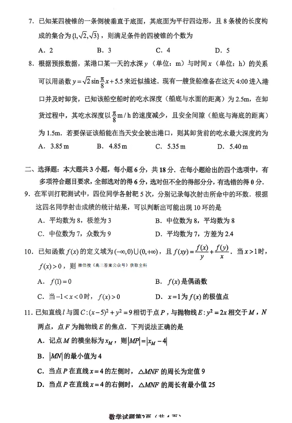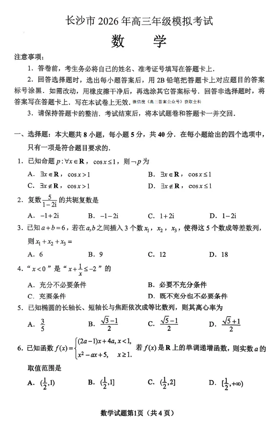 当前位置:首页>长沙>湖南省长沙市2026年高三年级模拟考试(长沙一模)(2.1-2.3)数学试卷及答案