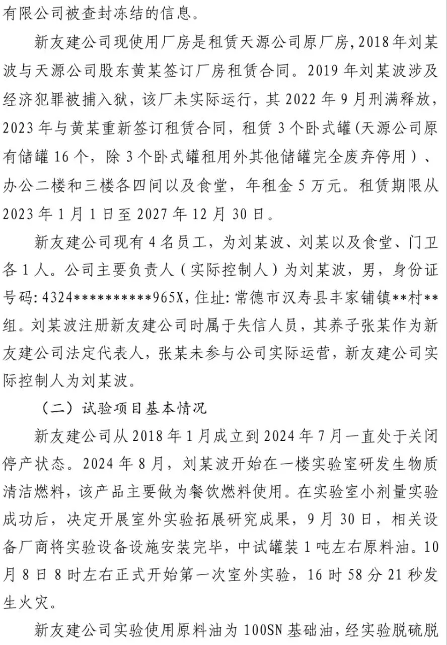 常德汉寿湖南新友建能源有限公“10·8”一般火灾事故调查报告