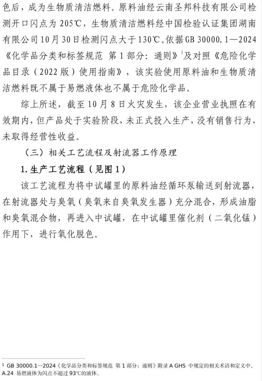 作业人员错误操作,关停了循环泵,倒流的富氧油脂在射流器内形成的高温高压,超过射流器臭氧通气管与射流器接口强度,高温高压的富氧油脂与射流器吸入室管口强烈摩擦,引发射流器内的高温液体燃烧,燃烧后产生更高温度把射流器熔化,富氧油脂大量泄漏,导致此次火灾。