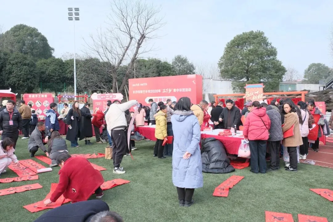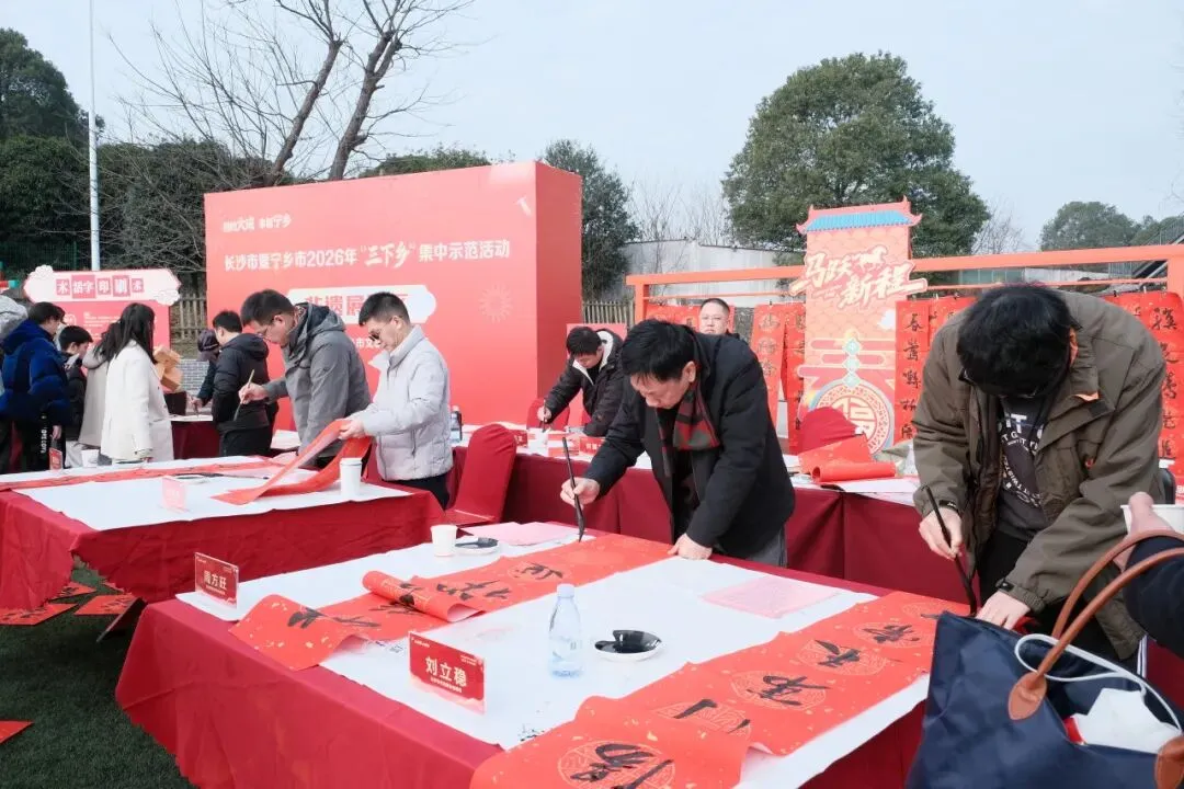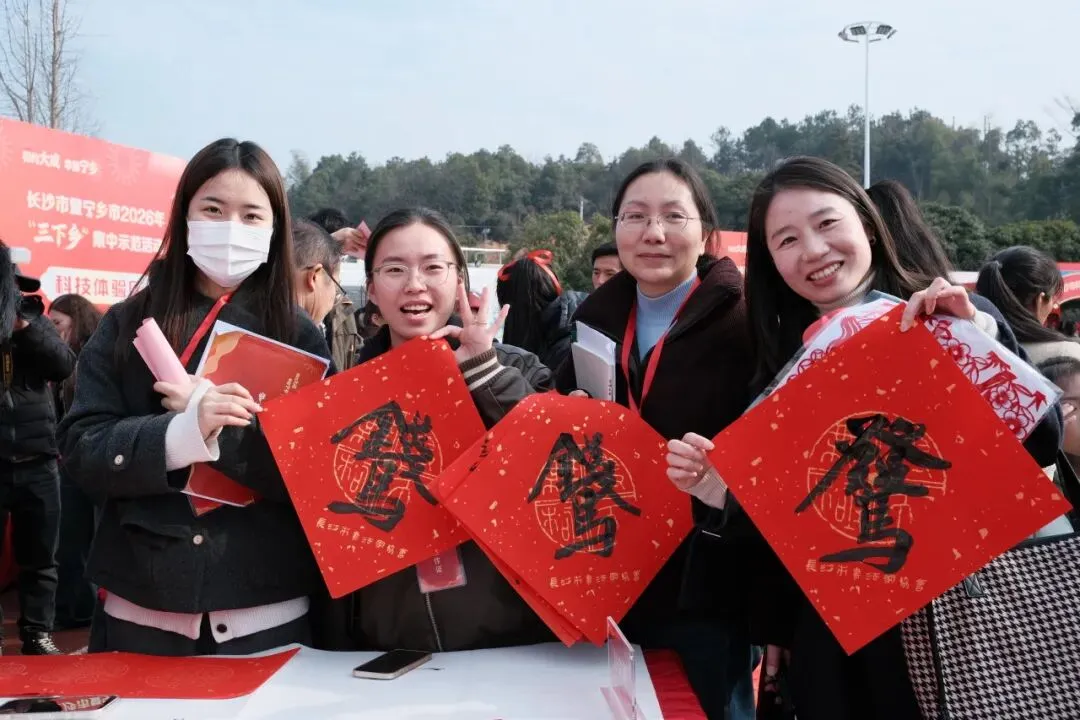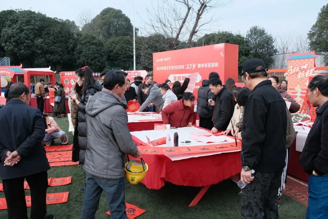 2月3日上午,长沙市暨宁乡市2026年文化科技卫生“三下乡”集中示范活动在宁乡市大成桥镇举行。现场,来自长沙市、宁乡市的43家单位将一场饱含政策温度、文化深度、民生厚度的“新春大集”送到群众身边。长沙市委常委、市委宣传部部长伍贤运,长沙市文联党组成员、副主席邓文娟等出席活动。