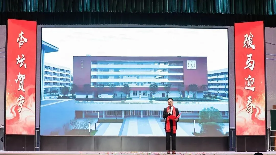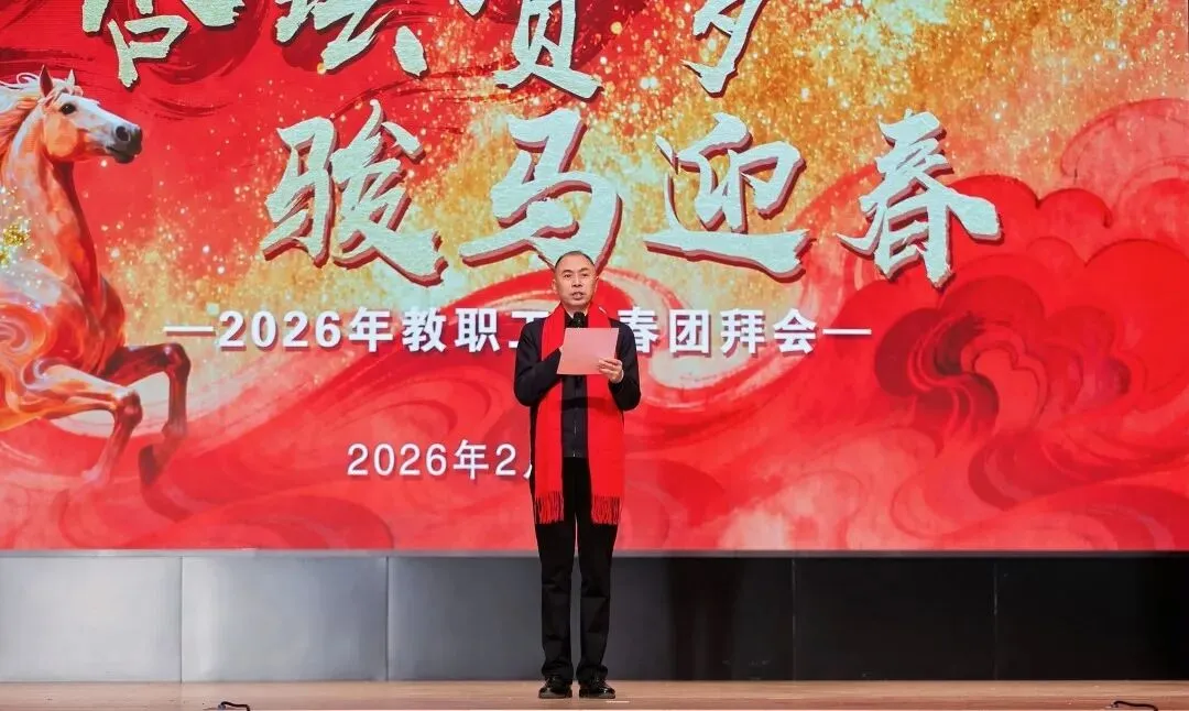 精彩开场过后,校党委书记宋健平登台致辞,为全体同仁送上新春祝福与殷切期许。他表示,这是一场跨越山海的团聚,从清水塘到科学城,从长株潭到大湘西,从湘江之滨到天山脚下,每一步奔赴都藏着教育深情;这是一次满含敬意的团拜,过去一年,老师们以坚守诠释初心,以担当践行使命,所有付出都将化作学生成长的年轮与学校发展的刻度;这更是一份凝心聚力的团结召唤,新岁愿全体一中人心相连、手相牵,以团结之力破难题,以同心之志赴新程,共同书写学校高质量发展的崭新篇章。殷切的寄语、美好的祝愿,让现场暖意融融,备受鼓舞。