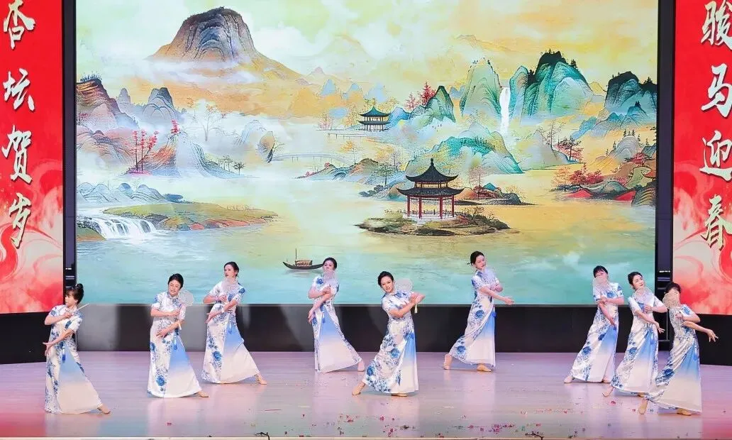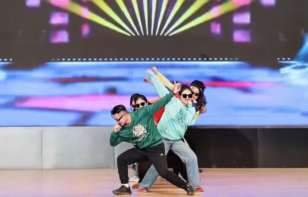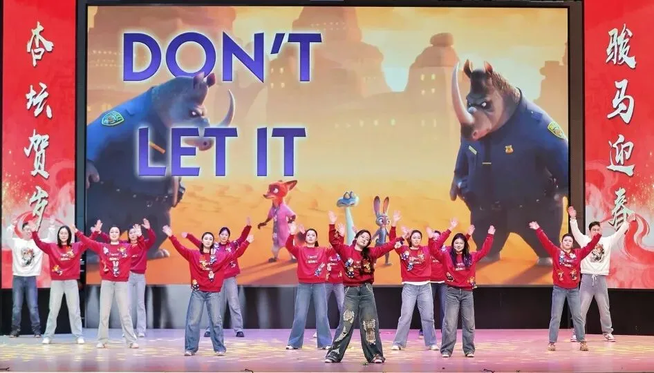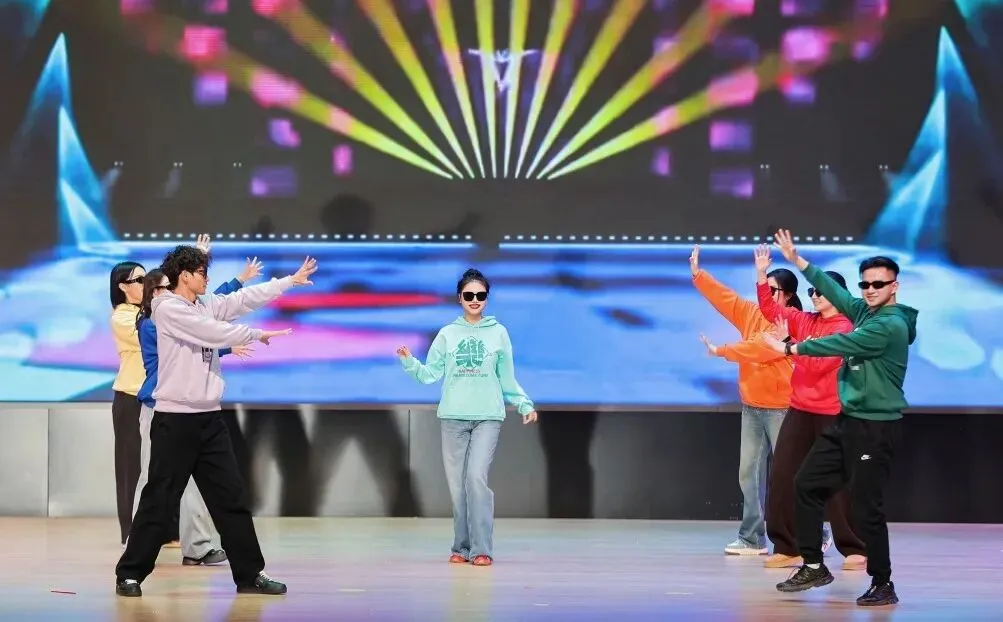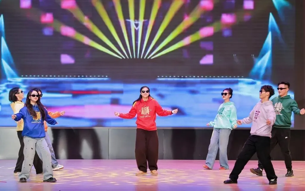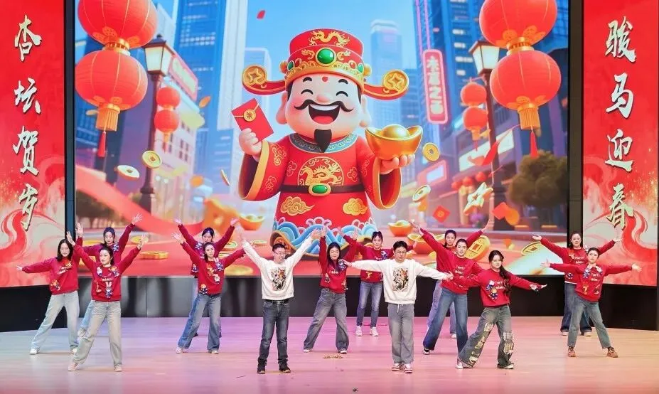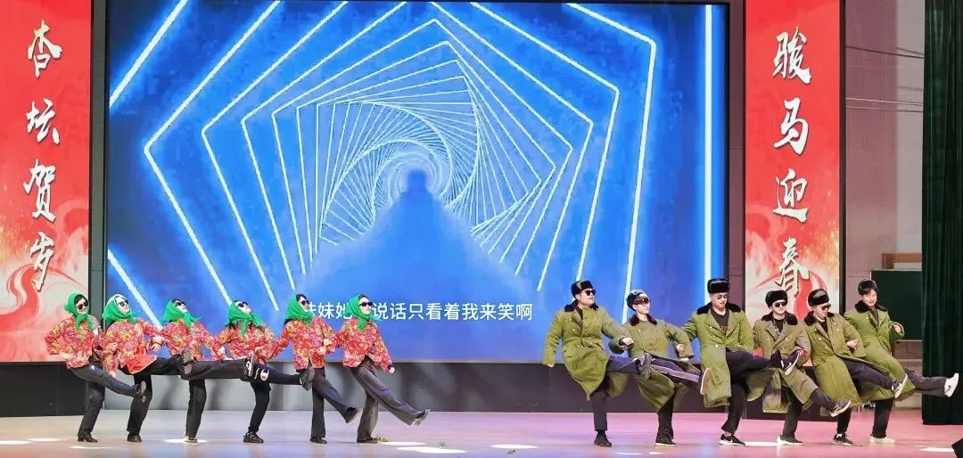 致辞落幕,精彩继续。科学城校区的老师们带来复古舞蹈《OK disco》,欢快节奏与青春活力碰撞,将流金岁月的美好与新春的喜庆完美融合。