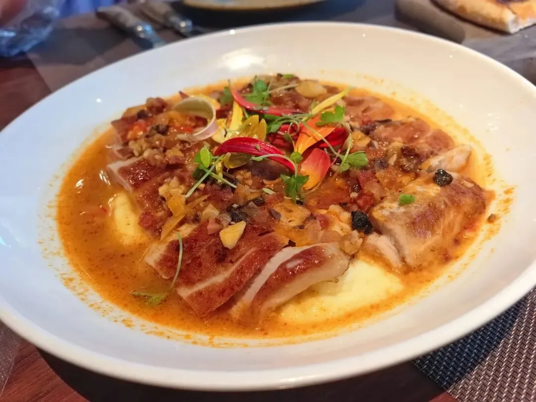 应该是创意新菜,土豆泥打底配上冬阴功汤,再铺上一层松板肉,感觉单独都是很好吃的东西混合在一起就不对劲了哈哈哈