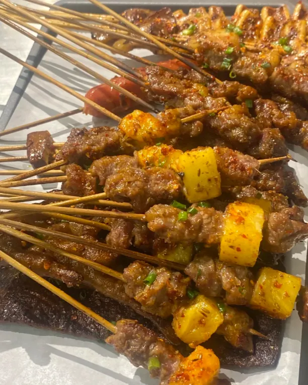 到了晚上,城南夜市最热闹。油锅“滋啦”作响,烤黄鳝、剁椒鱼头、花菜炒腊肉……空气里糊着烟火和笑声。