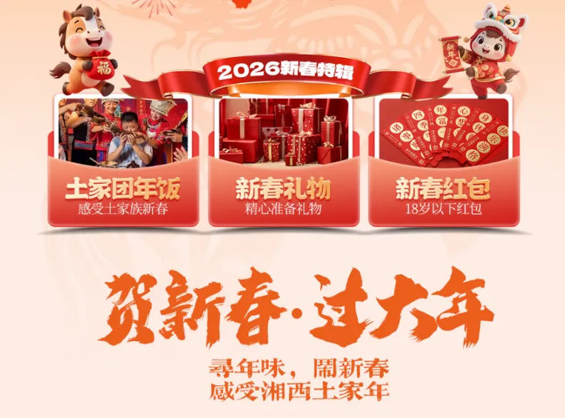 4、新春神秘礼物+湘西土家团年饭+18岁以下专属新春红包
