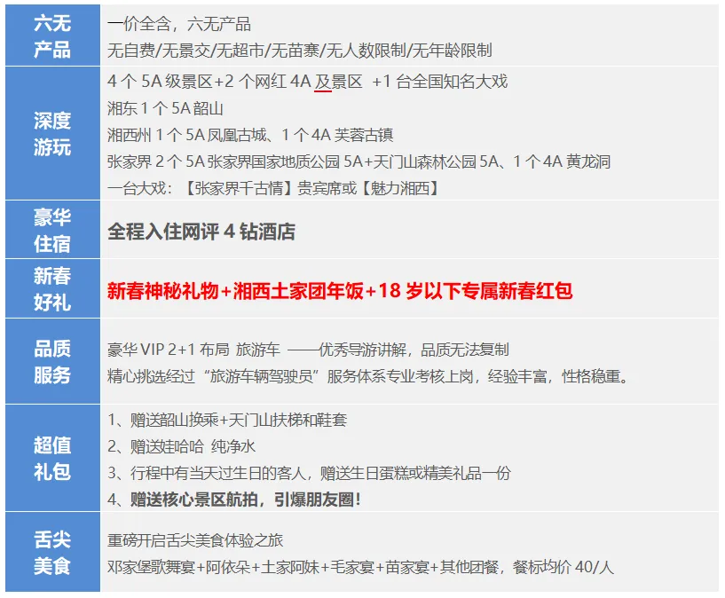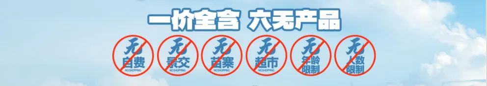 1、一价全含,六无产品(无自费、无景交、无超市、无苗寨、无人数限制、无年龄限制