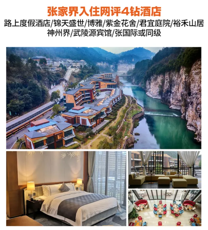 张家界:网评4钻 路上度假酒店/锦天盛世/博雅/紫金花舍/裕禾山居/神州界/张国际或同级