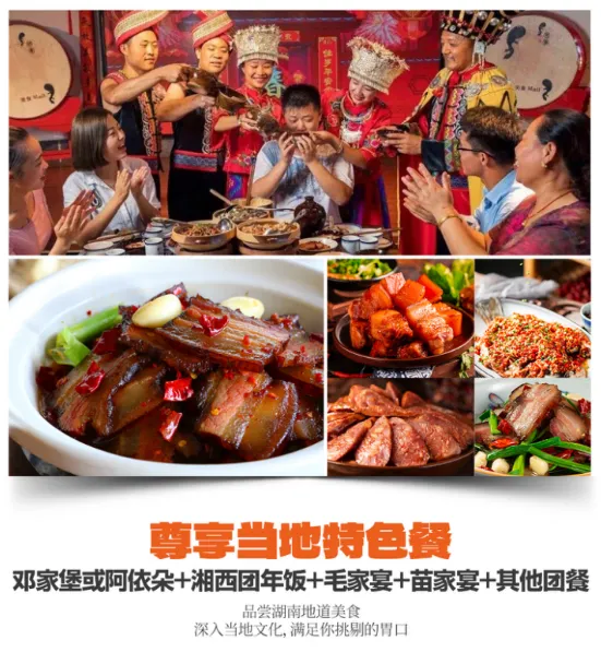 邓家堡歌舞宴+阿依朵+土家阿妹+毛家宴+苗家宴+其他团餐,餐标均价40/人