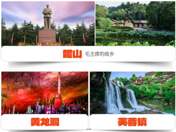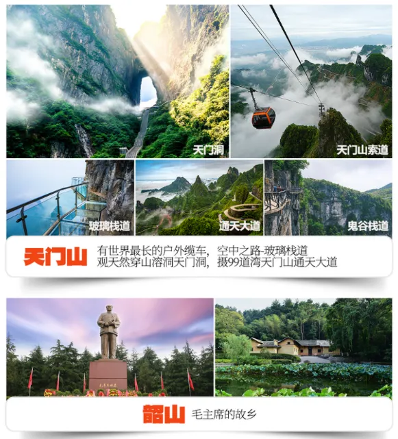 2、4个5A级景区+2个网红4A级景区+1台全国知名大戏+5A韶山+5A凤凰古城+4A芙蓉古镇+5A张家界国家地质公园+天门山森林公园+4A黄龙洞