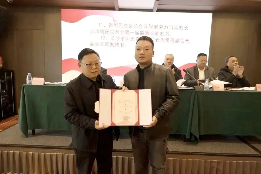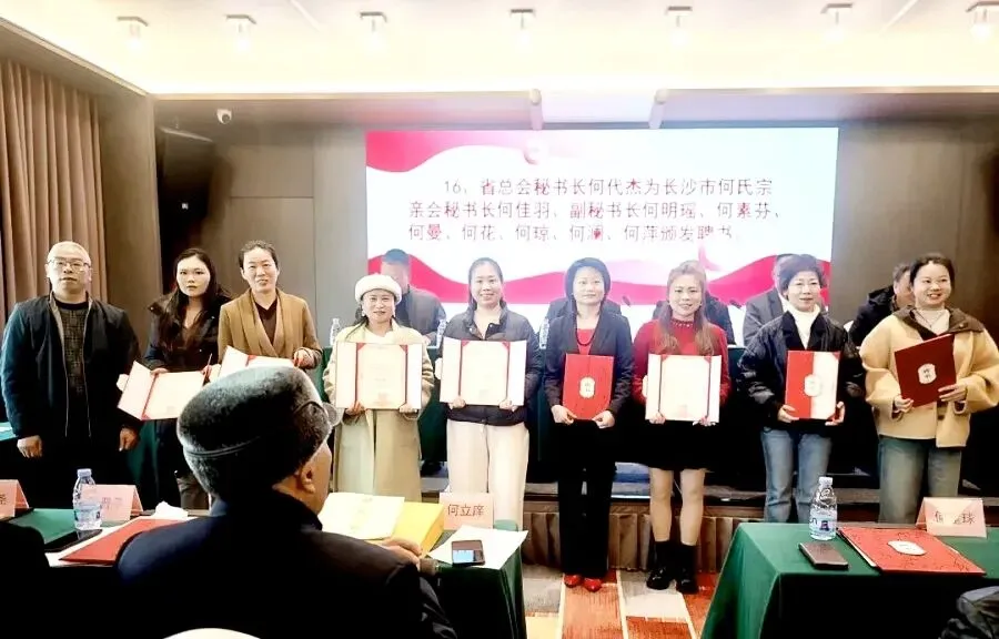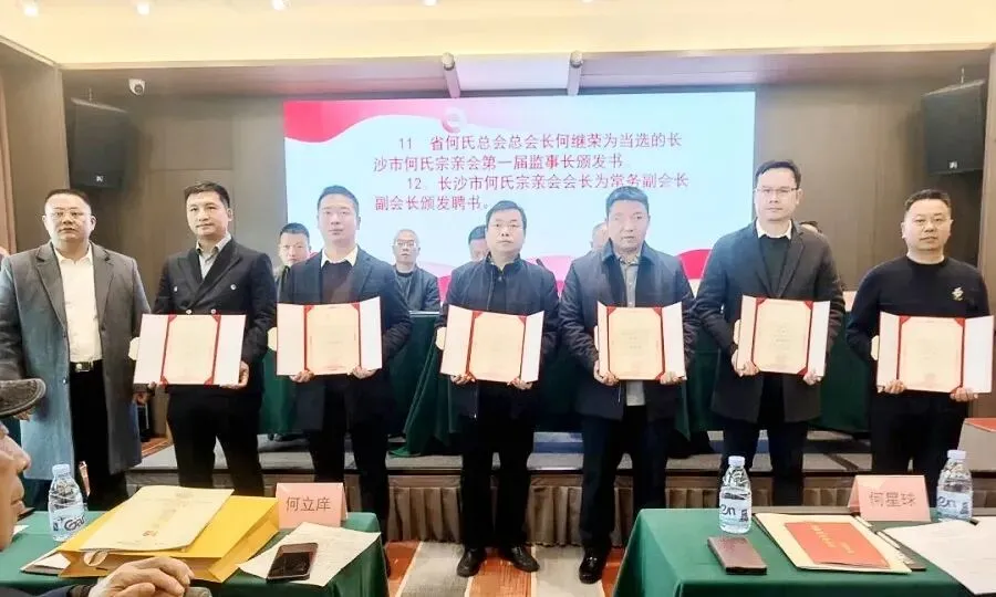 2026年1月10日,长沙市何氏宗亲文化交流团体在长沙成立。湖南总会、特邀嘉宾,及各区县市宗亲代表齐聚一堂,共同见证这一家族盛事。