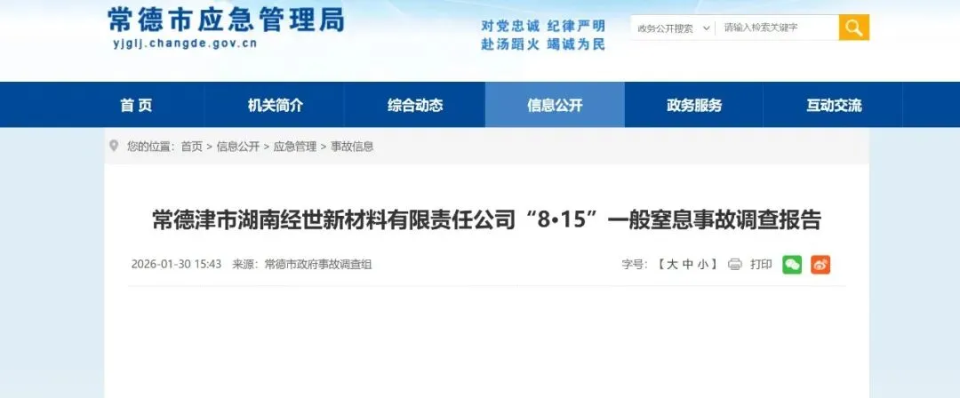案例学安全|常德津市湖南经世新材料有限责任公司“8·15”一般窒息事故调查报告