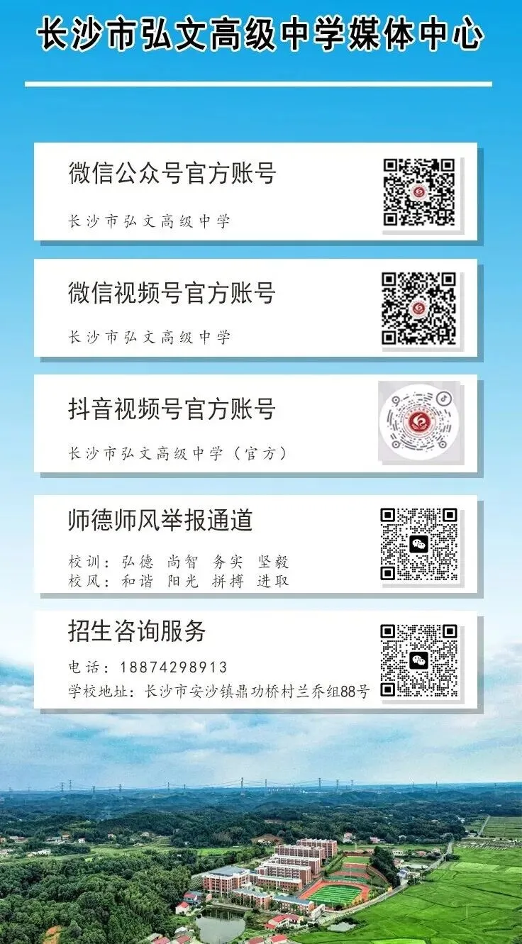 家校同心,其利断金;共育同行,未来可期。新的一年,长沙市弘文高级中学将继续坚守教育初心,深耕细作,用心育人,也期待与您继续携手,以爱为桥,以行作舟,陪伴每一位弘文学子驰骋新程、跃马扬鞭,成就更好的自己!