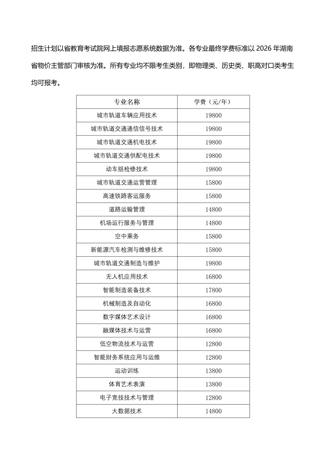 2026湖南单招院校专业