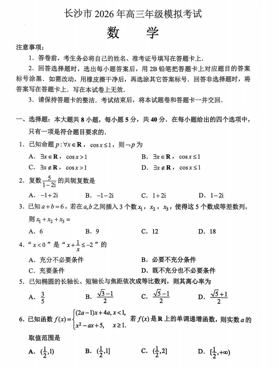 我用夸克网盘给你分享了「【湖南卷】湖南省长沙市2026年高三年级模拟考试(长沙一模)(2.1-2.3) 全科试题卷+答案」,点击链接或复制整段内容,打开「夸克APP」即可获取。