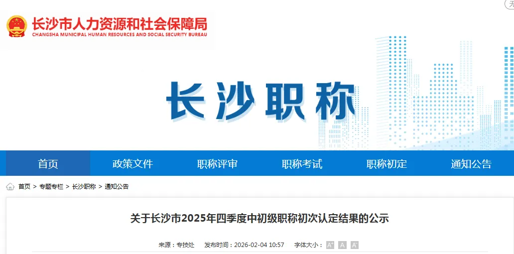 根据《湖南省人力资源和社会保障厅关于做好职称认定工作的通知》(湘人社函〔2024〕115号)规定,经推荐、审核,同意认定刘鸿飞等676位同志具备中级专业技术职称(见附件1),傅新等466位同志具备初级专业技术职称(见附件2),现进行公示。公示时间为2026年2月4日至2月10日。