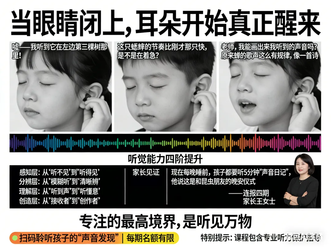 它是听觉智力的启蒙课,是专注力的重塑课,是生命共情的实践课。