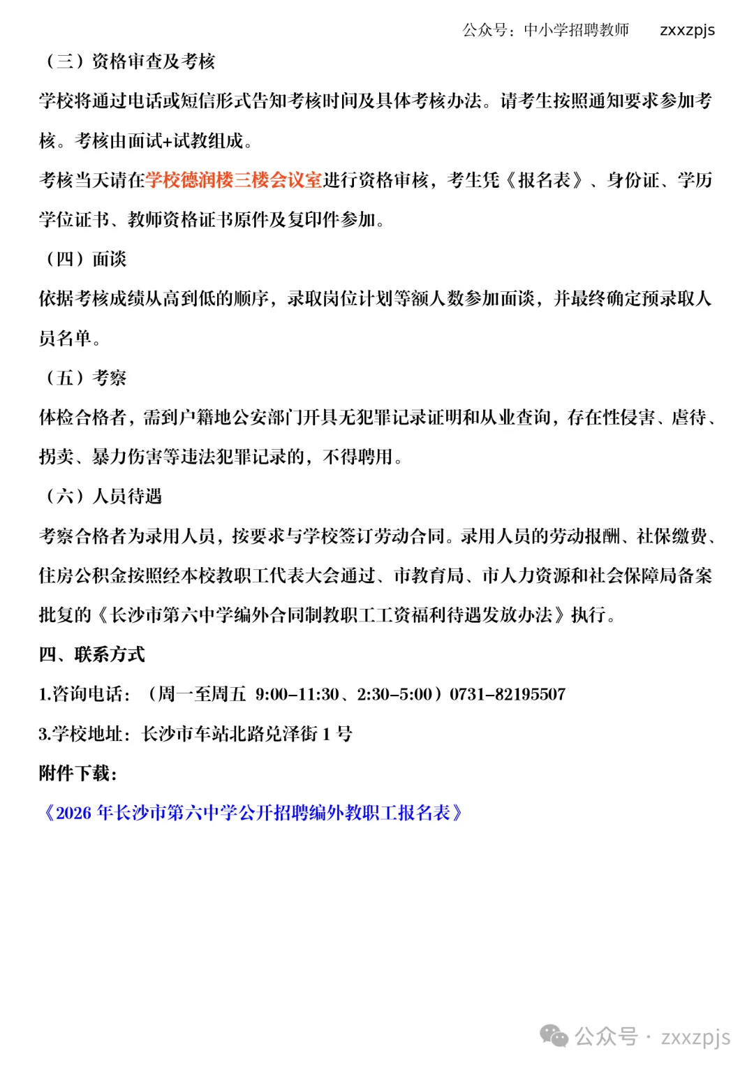 附件下载:《2026年长沙市第六中学公开招聘编外教职工报名表》