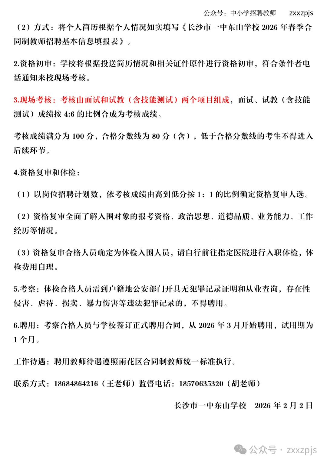 长沙市一中东山学校2026年春季合同制教师招聘公告