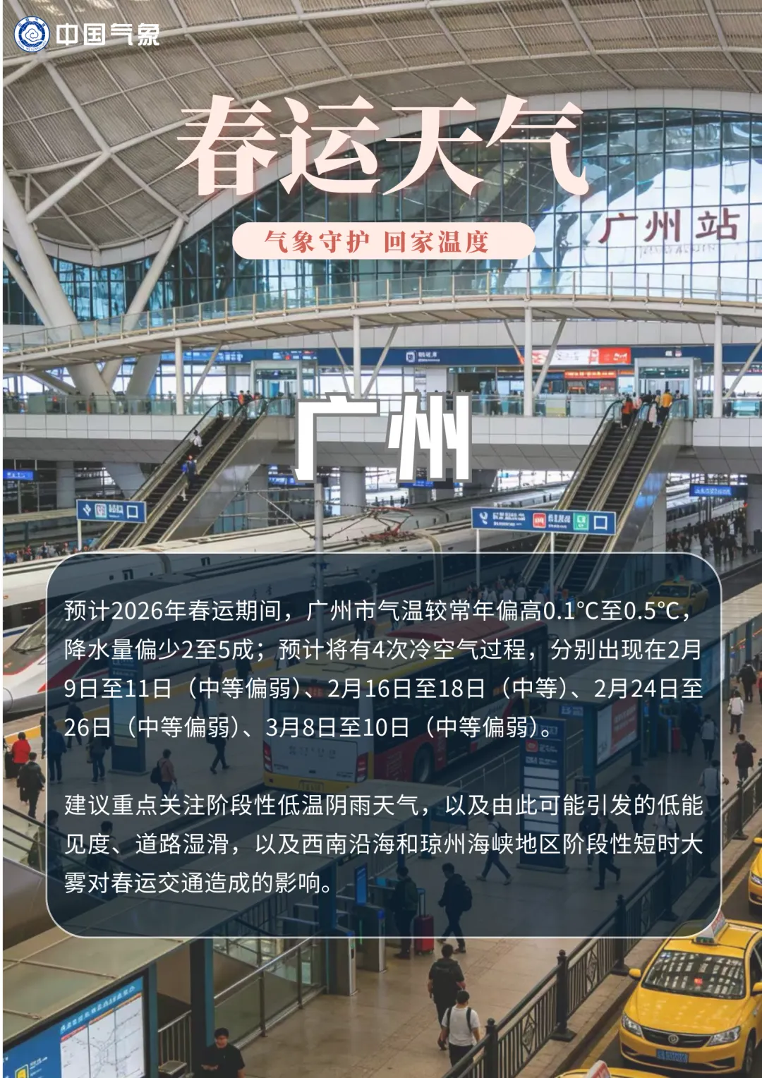 2月4日是中国传统二十四节气中的第一个节气——立春,全国大多地区气温继续升高,江南大部温暖如春。但自5日起,寒潮来袭,中东部将出现剧烈降温和雨雪天气,多个省份将降下大到暴雪或大暴雪,需防范雨雪天气和气温骤降对春运及能源供应带来影响。据中央气象台预报,华北南部到江南大部4日气温将升至近期高点,10℃线将北移至河北北部至山西北部一线,北京最高气温超过10℃。5日起,随着新一轮寒潮来袭,多地气温将出现急转。中央气象台预计,5日至7日,中东部大部地区气温将自北向南下降6℃至10℃,其中东北地区东部、江南东部的部分地区降温将达12℃至16℃;中东部地区有4至5级偏北风,阵风6至7级。雨雪方面,中央气象台预计,5日至6日,江汉、江南、西南地区东部及华南大部等地将有小到中雨、局地大雨,江苏、安徽、上海、浙江中北部等地将出现雨转雪或雨夹雪,河南南部、安徽中南部、江苏中南部、浙江北部等地的局部地区将有大到暴雪或大暴雪;西北地区东部、华北西部、东北地区等地有小到中雪。气象专家提醒,目前正值春运期间,河南、湖北、江苏、安徽、上海、浙江等地会出现明显的雨雪天气,对正在进行的春运有一定影响,有关部门需做好相关安排。面对中东部地区即将到来的大风降温和雨雪天气,公众出行需注意交通安全和防寒保暖。刮风、下雪or晴天?热门旅游城市春运天气“剧透”在此速戳查看 男子称凌晨正住酒店被陌生人打开房门?酒店回应:确实刷卡了但没打开!现场监控流出.......