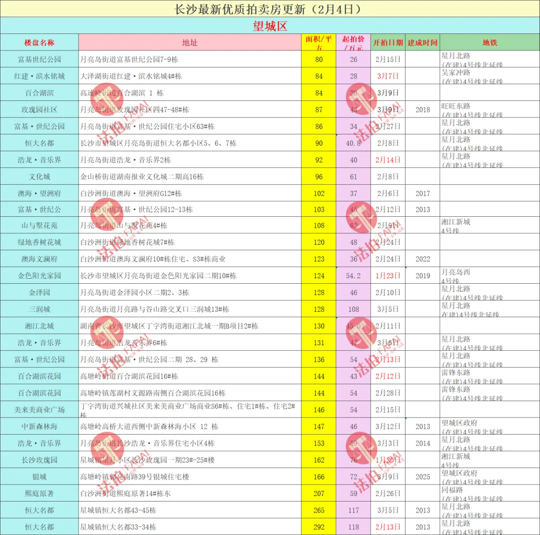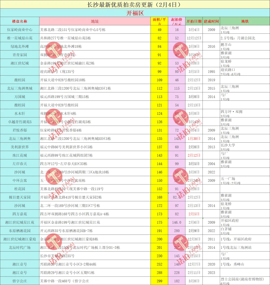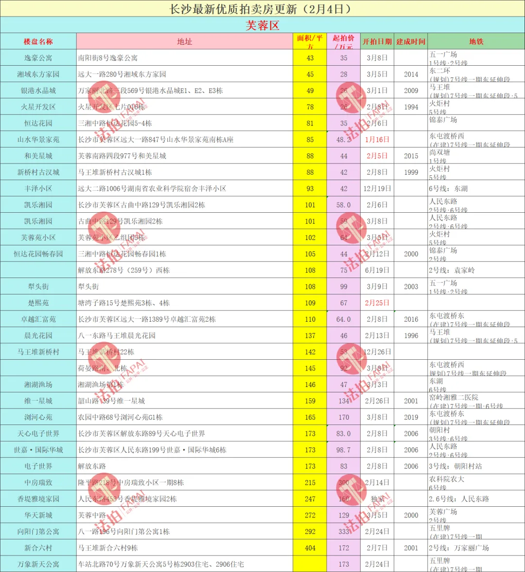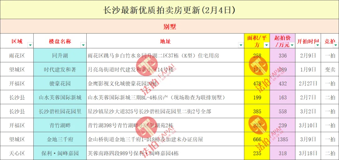 长沙法拍房最新汇总(2月4日更新)