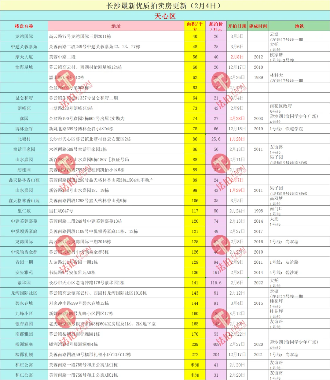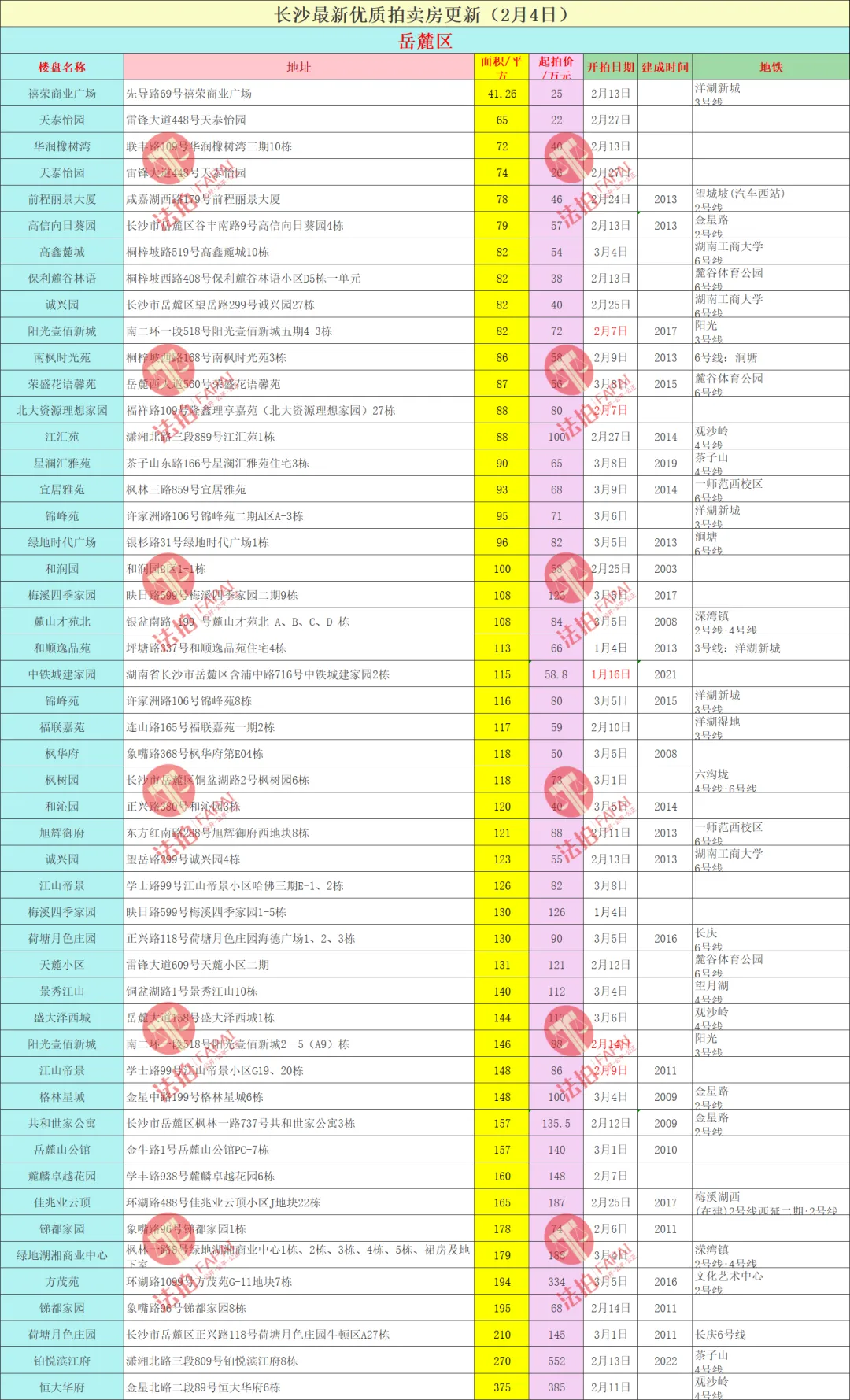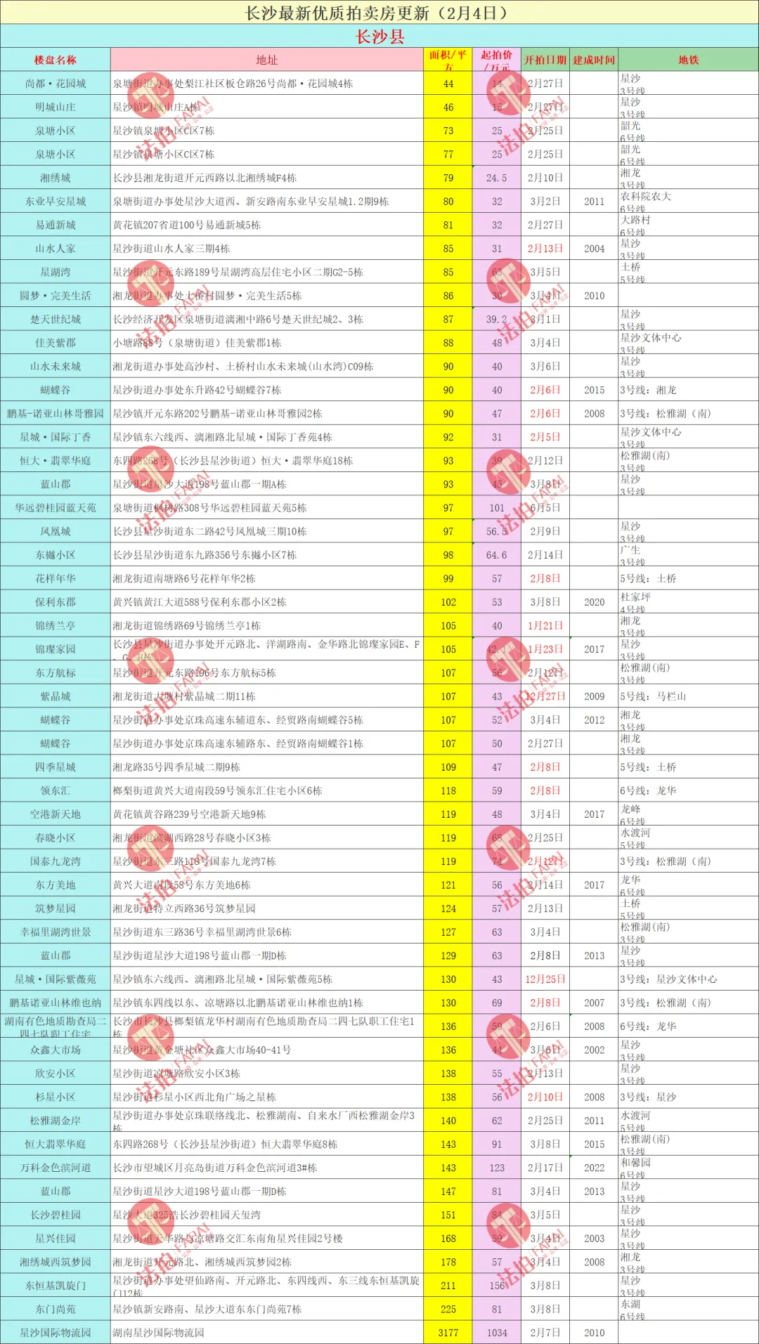 长沙法拍房最新汇总(2月4日更新)