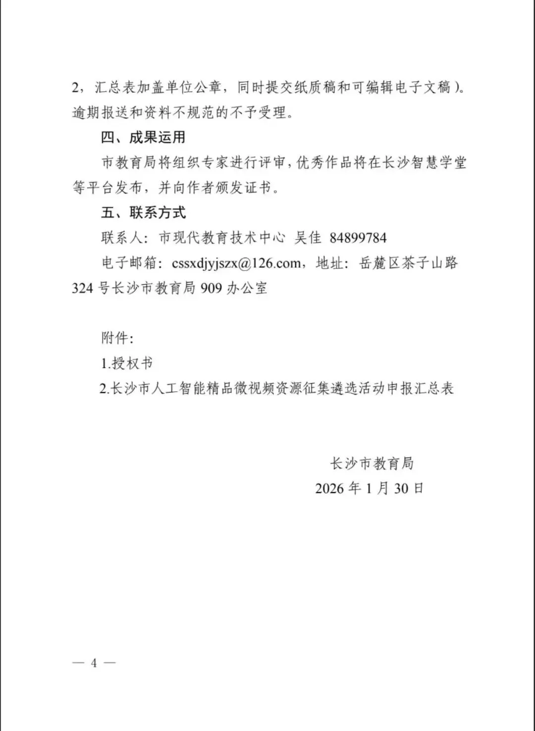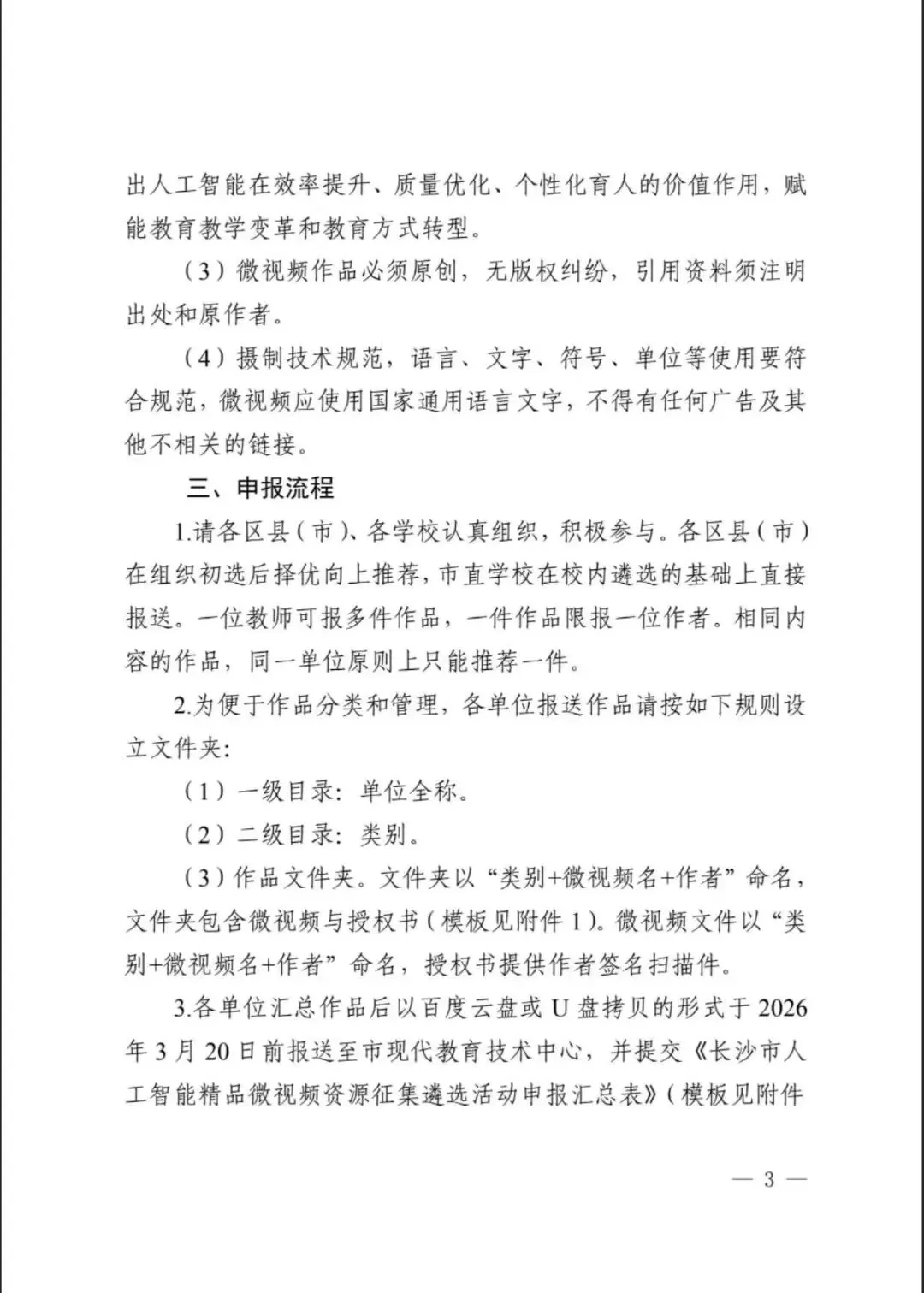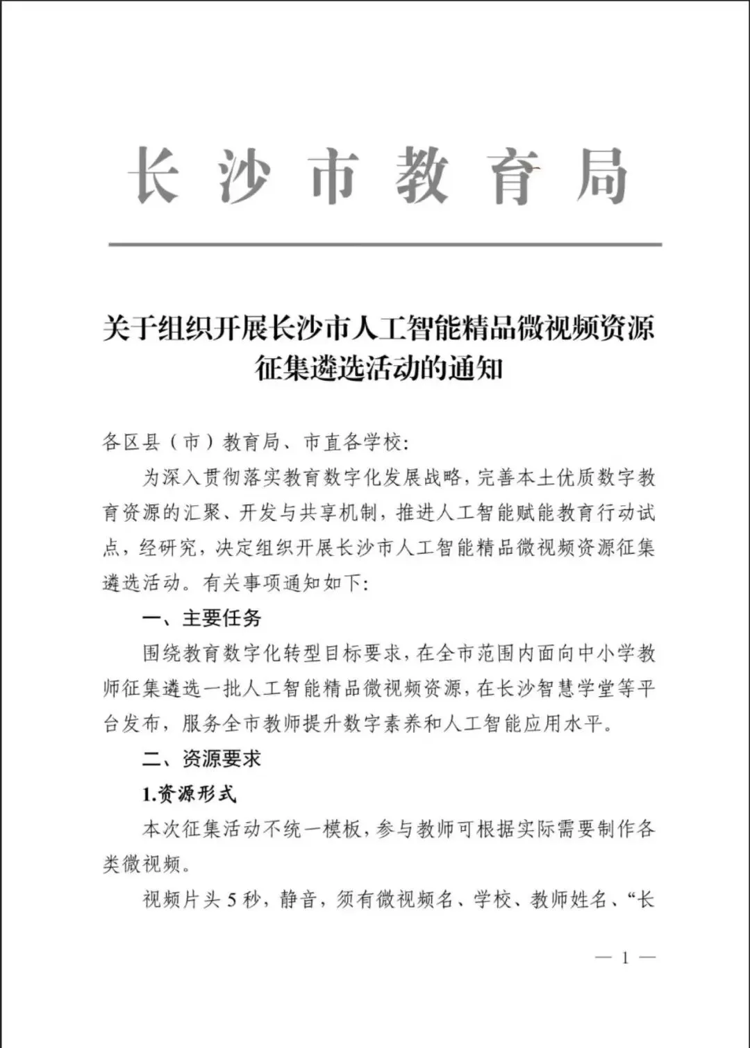 长沙市教育局关于组织开展长沙市人工智能精品微视频资源征集遴选活动的通知