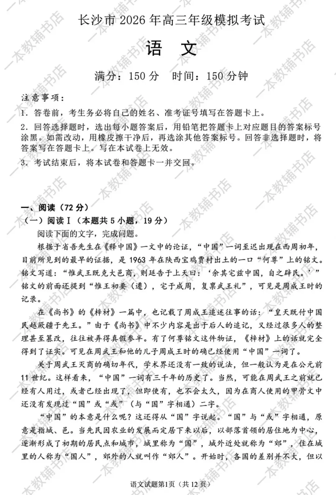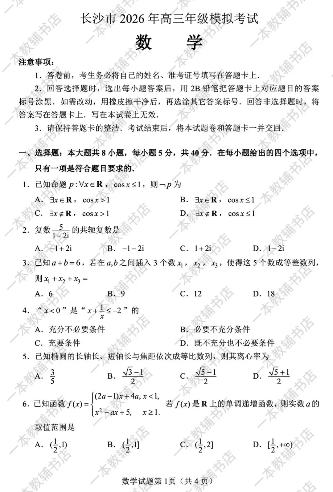 【炎德·英才大联考湖南省长沙市一中2026届高三月考试卷(四)‖全科