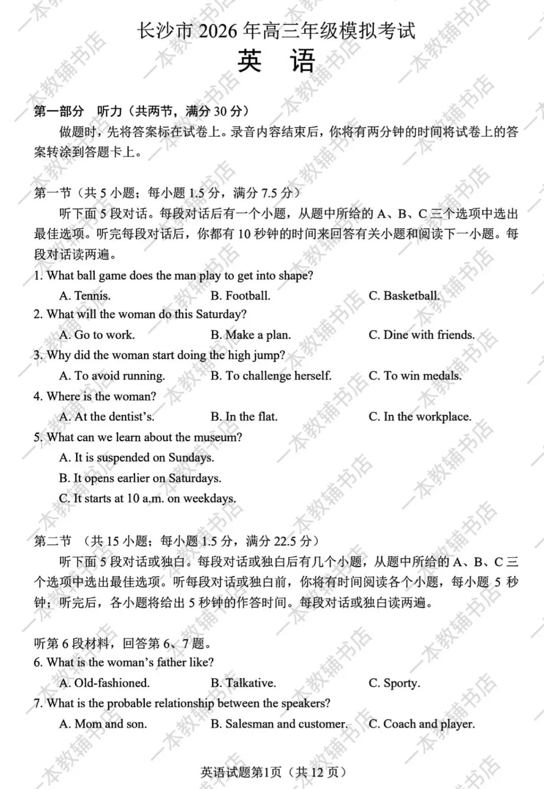 【字节精准教育联盟·NCS】四川省2026届高三高考适应性考试(一诊)‖全科(含听力音频)