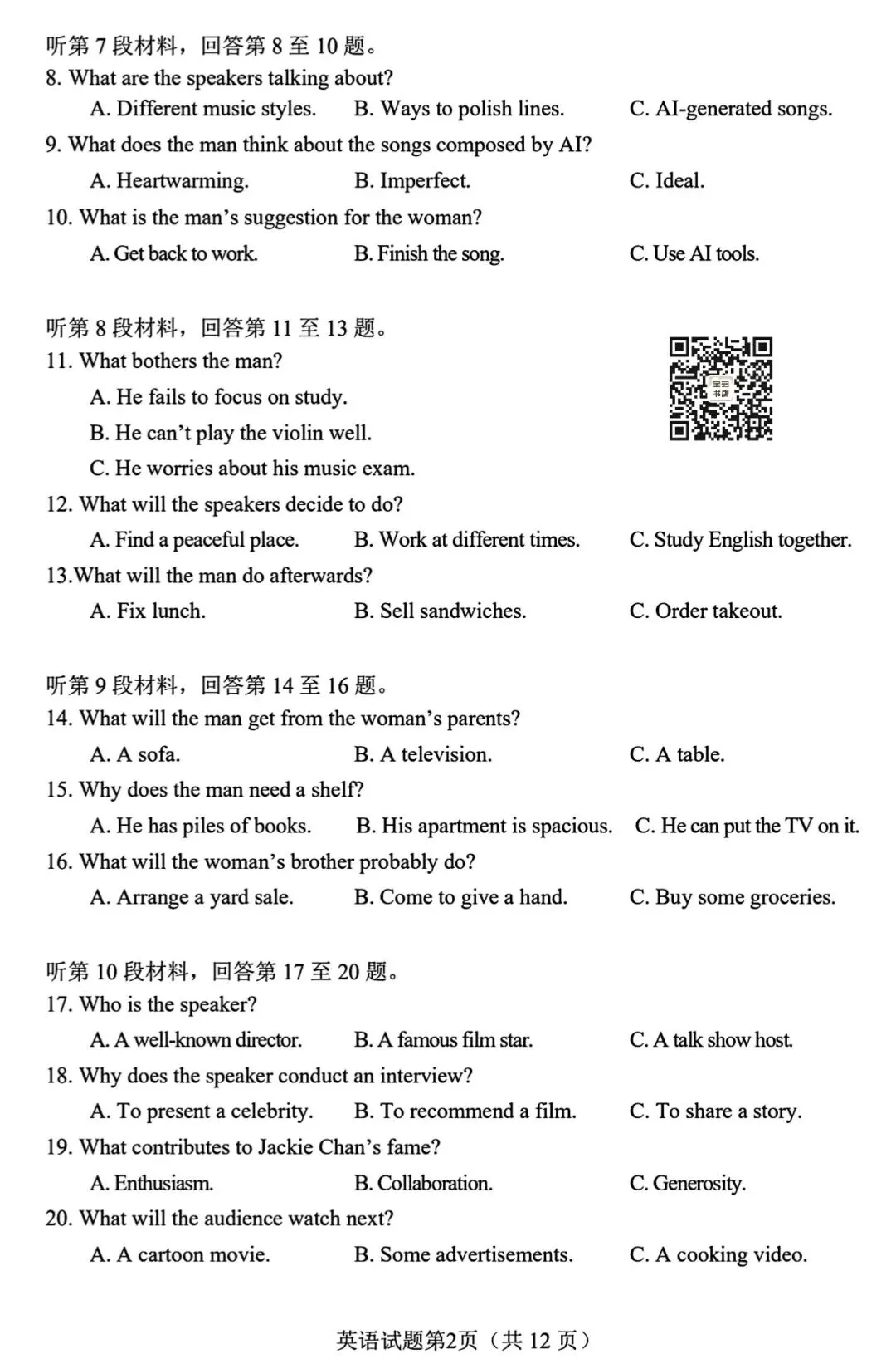【天一小高考】2025-2026学年(上)高三年级(二)‖全科(含听力音频)