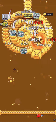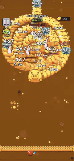 游戏的第一眼观感具有一定的“误导性”。屏幕上,敌人被设计成一条蜿蜒前进的长龙,沿着既定的轨道向终点移动。这种视觉元素容易唤醒玩家对于《祖玛》的记忆。然而,当玩家真正上手后会发现,核心机制并非颜色匹配消除。玩家控制的角色位于屏幕特定位置,自动发射子弹攻击敌人。这里不存在“三消”逻辑,而是纯粹的DPS与怪物HP的对抗。玩家的目标是通过集火攻击敌人的身体段落,削减其血量来缩短龙身,直至将其完全消灭。