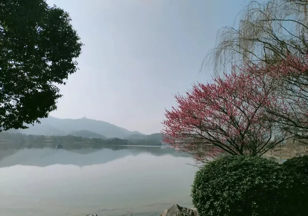 长沙西湖东至滨湖路,西抵龙王港,南靠枫林路,北临咸嘉湖路,总占地138.66公顷,湖面面积64.73公顷。是岳麓山风景名胜区八大景区之一。从枫林路进入西湖,就来到了品花阶,可看到一树树的红梅,如云霞坠地,柔嫩的花瓣与恩瑞大厦的玻璃幕墙的冷光融在一起。沿着湖边前行,白鹭掠过水面时,翅膀尖勾连起两个世界:左边是天鹅到家、五八小镇科创园数据流动的电子星河,右边是芦苇丛中蛰伏的古老虫唱。虽是冬日,游人也穿梭其间,或是驻足拍花,或是仰首望楼。