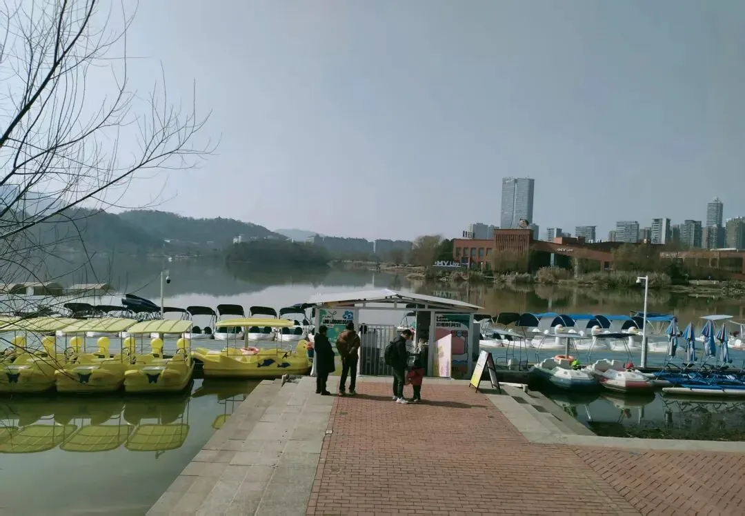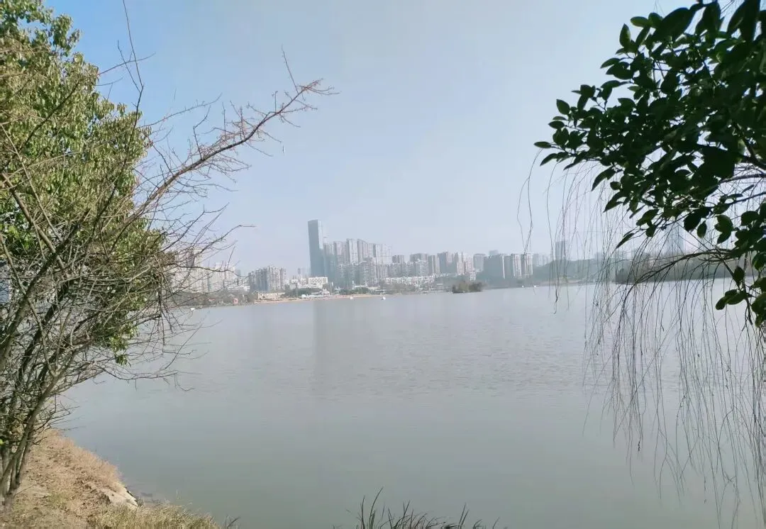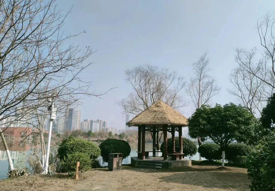 沿湖再走,有一观景台。远远看到一茅草凉亭,隐于远处城市高楼在湖水的倒影中。亭顶的茅草仍保持着温暖的枯黄。一个人默默地走在这静谧的角落,什么都可以想,什么都可以不想。心被这澄澈的湖水澄清。这是人在都市里难得的慰藉。继续前行,突然湖面开阔。水面停靠了许多船只,这里是水上运动训练基地。训练场在冬日的薄雾中,宛如一幅水墨丹青。几位运动员划着赛艇掠过湖面,桨叶起落间,搅碎了高楼的倒影,却又在涟漪荡开后,让城市的轮廓重新愈合。运动员们规律而强节拍的划桨声,惊起了正在觅食的野鸭。在这片水域,力量与柔美共生,这或许是长沙西湖最独特的魅力吧。