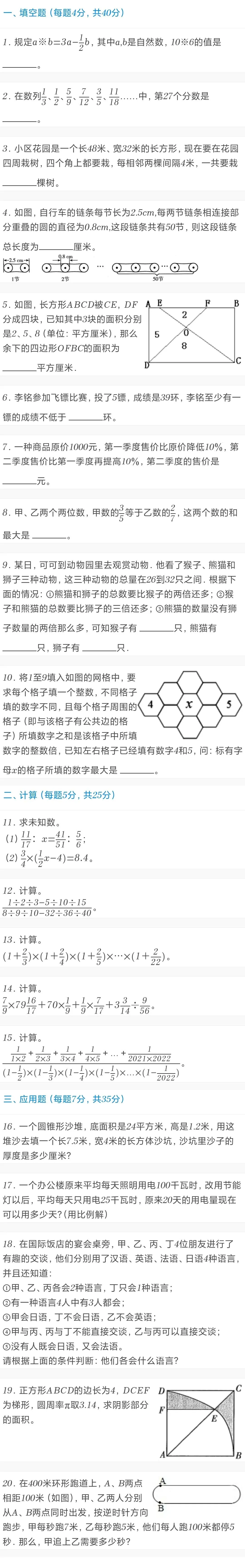 近日,名校少年班团队收集到2025年12月湖南长沙一中广雅中学六年级拔尖创新选拔考试数学试卷,感兴趣的同学可以尝试做一下。