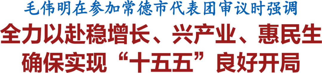 2月4日下午,省人大代表、省委副书记、省长毛伟明来到省十四届人大四次会议常德市代表团,与代表们一同审议政府工作报告,审查省“十五五”规划《纲要草案》、计划草案及报告、预算草案及报告。他强调,要深学笃行习近平总书记关于湖南工作的重要讲话和指示批示精神,全力以赴稳增长、兴产业、惠民生,坚决扛牢经济大市责任担当,确保实现“十五五”良好开局,为全省高质量发展作出新的更大贡献。