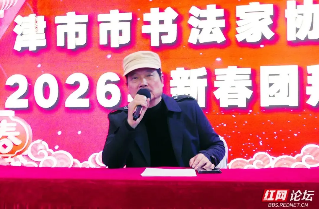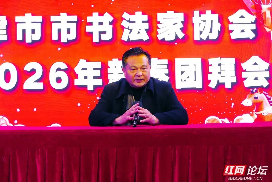 团拜会由津市市书法家协会常务副主席韩绍德主持。协会主席周尚新(因声带小结手术)委托协会副主席吴学军作2025年工作总结报告暨2026年工作思路,这份报告犹如一幅生动的画卷,全面回顾了过去一年协会在书法创作、公益教学、展览交流、文化传承等多个领域所取得的成绩。同时,报告也明确了新一年的工作方向,协会将持续深耕书法创作,进一步丰富交流形式,不断扩大文化传播,力求推动协会发展再上新台阶。