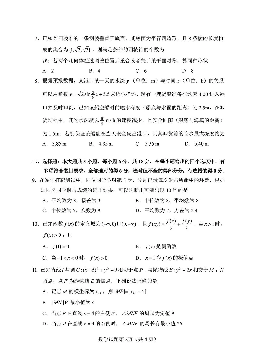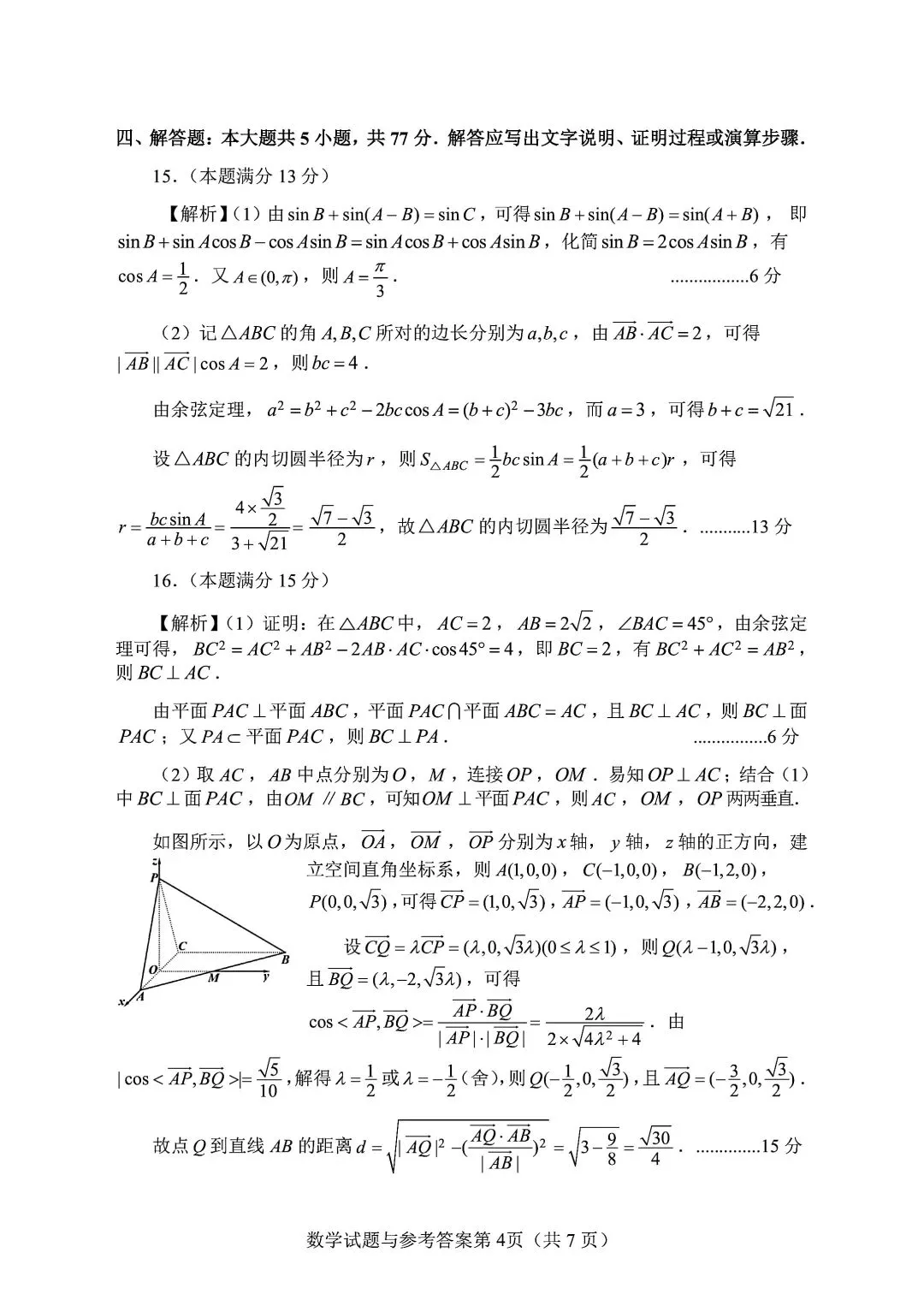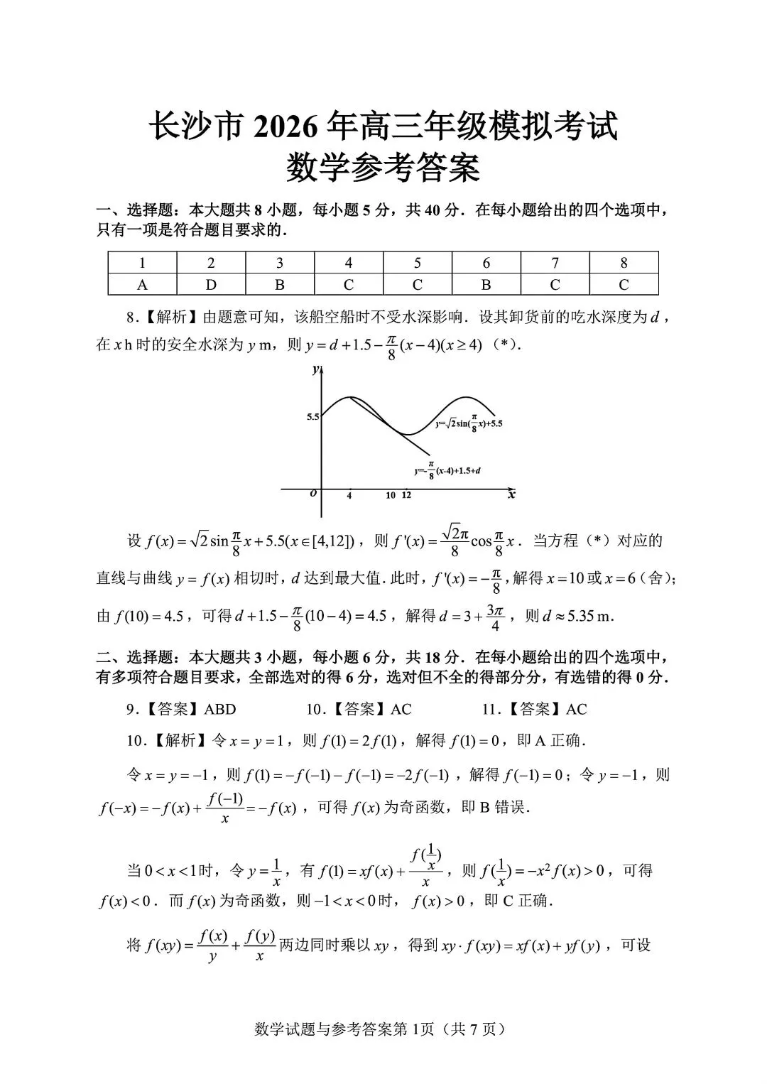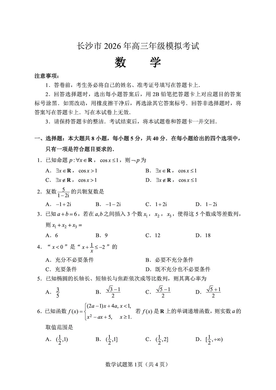 长沙市2026年高三年级模拟考试(长沙一模)数学试题及答案