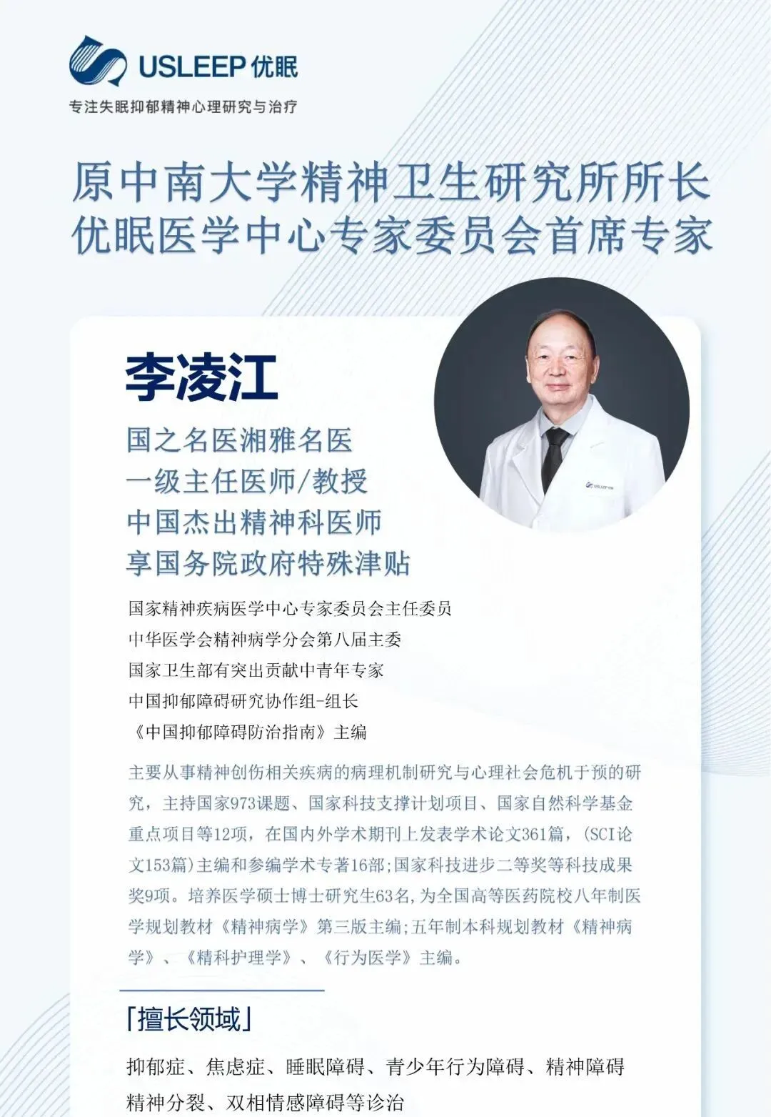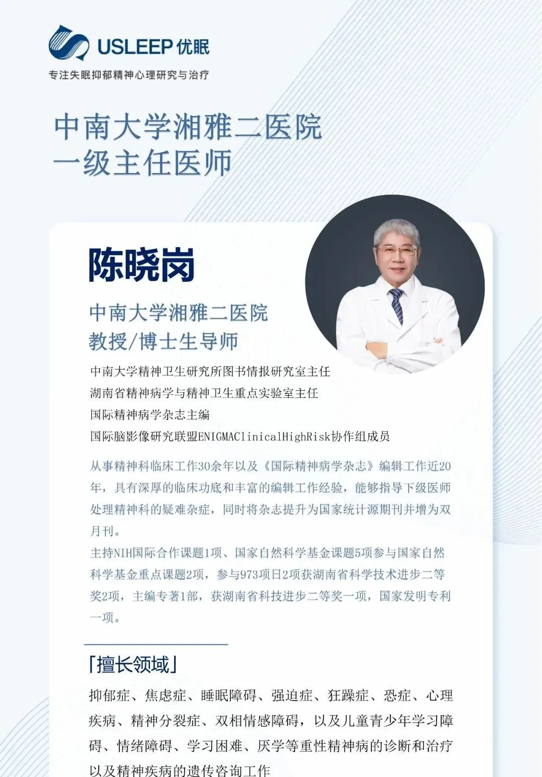 长沙优眠精神心理科专家均为全国排名靠前的主任及副主任医师,正副高级教授,人才规模位居优眠医学中心首位。长沙优眠医学中心精神心理科坚持为患者提供适合的医生团队、优质的医疗服务、靠谱的预后康复、专业的诊疗方案。