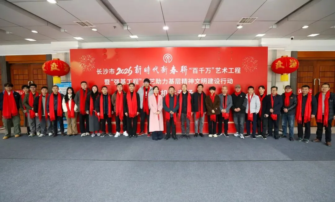 2月4日上午,长沙市会议中心一楼大厅人潮涌动,气氛热烈,长沙市书协2026年新时代新春联“百千万”艺术工程公益活动(市直机关专场)在此举行。活动由市直机关工委、市文联、市机关事务管理局主办,长沙市书法家协会承办。省文联兼职副主席、市文联党组书记、主席舒全球,市文联党组成员、副主席、行业党委书记周永康,市文联党组成员、副主席邓文娟,长沙市书协副主席周少剑,长沙市书协副主席、秘书长周方旺等参加活动。
